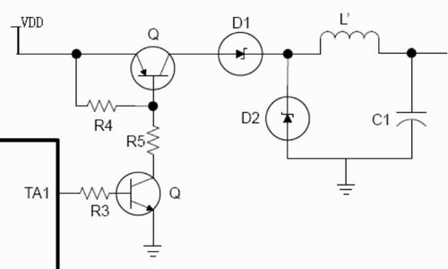 充電控製電路設計的核心是利用PWM控製MOSFET管的導通,MSP430F20X3係列時鍾頻率最高為16MHz。如果取PWM分辨率為9位,MOSFET管工作頻率為16000000/512=32768 (Hz),在音頻範圍外,不會產生噪聲。考慮到脈衝寬度與電源的輸出並非線性關係,電源輸出最多能控製到1/256,完全滿足設計精度的需要。原理圖如圖2。