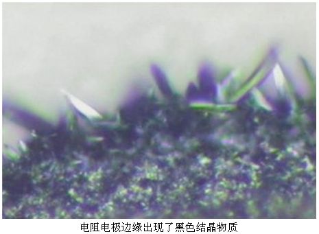 電解腐蝕開路多發生在氧化膜電阻器上,其失效原因是電阻器鎳鉻膜在水汽和直流電場作用下,發生電解腐蝕開路,包封料中有少量的K+、Cl-加速了電解腐蝕的發生。