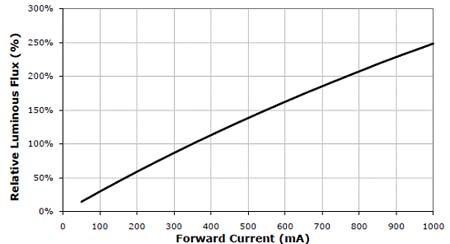 圖1. XLampXP-G的輸出相對光強和正向電流的關係