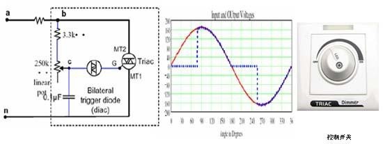 改變可變電阻的分壓比就可以改變其導通角,從而實現改變其有效值的目的。通常這個電位器帶一個開關,接在n的輸入端,用於開關燈。除了可控矽以外,還有晶體管後沿調光技術等等,因為它們的基本問題是相同的,就不在此介紹了。
