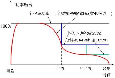 一般來說,路燈到半夜以後就沒有什麼用處了,所以通常的做法是12點以後關燈或者開一半亮度。但是最合理的做法是根據交通流量來控製路燈的亮度,甚至是完全自適應地控製亮度。圖10就是根據當地交通流量的統計值來調節路燈亮度的一個例子。