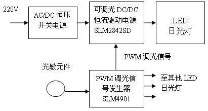 光敏元件的作用是感受周圍的日光,如果日光越強那麼就輸出一個PWM信號到所有靠近日光的LED燈具(例如LED日光燈),把它們的亮度調暗。一個調光信號發生器可以調節很多LED燈具,隻要這些燈具的恒流驅動源帶有PWM調光控製接口。這種調光係統本身的效率高達92%以上。而且不存在任何和牆上可控矽調光線路的兼容性問題。這種全自動的自適應節能調光是任何熒光燈、節能燈、高壓鈉燈等氣體放電管根本無法實現的,而卻是LED燈具最擅長的。