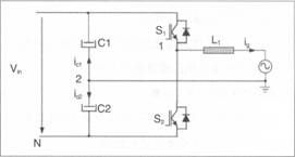 電氣連接為漏電流提供了流通路徑,是高效率的非隔離光伏並網逆變器應用的最大障礙。漏電流問題會產生寄生電容150nF/kWp,引起開關頻率共模電壓源。目前大多采用電路結構SPWM調製的策略。