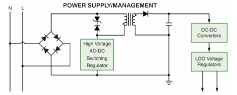 圖 1:智能電表電源及電源管理模塊框圖。