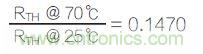 假設在25℃或室溫下,RTH為10,000Ω,那麼,在70℃下,RTH為1,470Ω。