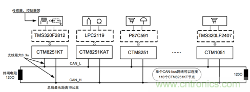 與485類似,CAN-bus也是以總線的方式進行通信的,所有的CAN節點都掛在一對差分線上。但CAN總線中的節點不存在主從的概念,當節點有數據需要上傳時可自主、即時發送,先進的仲裁機製保證數據不會衝突。