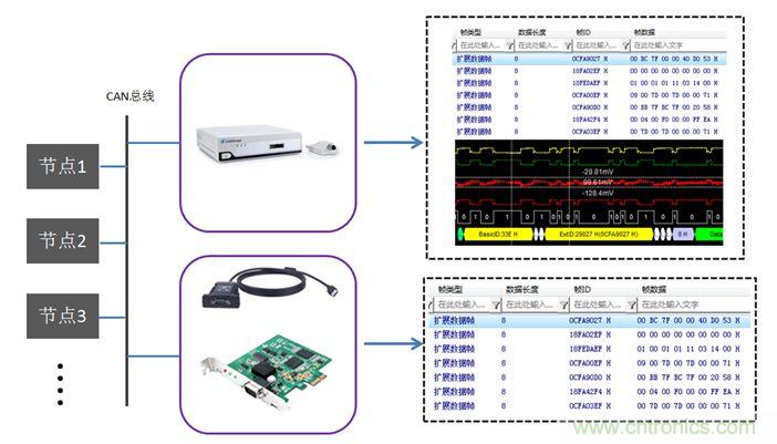 【導讀】在CAN網絡中,所有節點的數據收發共享一條總線。當麵對未知的多節點CAN總線網絡時,如何準確分析各節點間的通信協議呢?