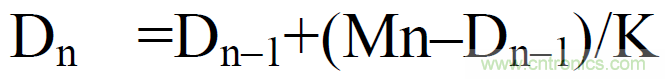 選擇指數平均法,用戶可設定衰減常數對電壓或電流有效值、有功功率的瞬時值(采樣數據)進(jin)行(xing)指(zhi)數(shu)平(ping)均(jun),去(qu)除(chu)被(bei)測(ce)量(liang)的(de)高(gao)頻(pin)成(cheng)分(fen)。其(qi)中(zhong)衰(shuai)減(jian)常(chang)數(shu)可(ke)以(yi)手(shou)動(dong)設(she)置(zhi),衰(shuai)減(jian)常(chang)數(shu)設(she)置(zhi)值(zhi)越(yue)大(da)測(ce)量(liang)值(zhi)越(yue)穩(wen)定(ding),對(dui)輸(shu)入(ru)變(bian)化(hua)的(de)響(xiang)應(ying)速(su)度(du)也(ye)就(jiu)越(yue)慢(man),也(ye)就(jiu)是(shi)說(shuo)測(ce)量(liang)延(yan)遲(chi)會(hui)相(xiang)應(ying)變(bian)長(chang)。該(gai)平(ping)均(jun)法(fa)常(chang)用(yong)於(yu)信(xin)號(hao)中(zhong)存(cun)在(zai)高(gao)頻(pin)信(xin)號(hao),通(tong)過(guo)設(she)定(ding)衰(shuai)減(jian)常(chang)數(shu)減(jian)小(xiao)高(gao)頻(pin)信(xin)號(hao)對(dui)數(shu)據(ju)的(de)幹(gan)擾(rao),公(gong)式(shi)如(ru)下(xia):