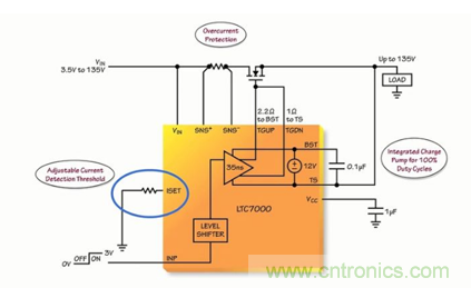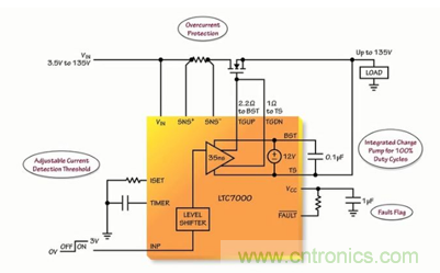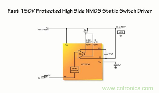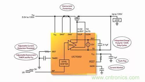 由此可見,作為一款靈活和堅固的器件,可使汽車和工業製造商提高其係統的性能和可靠性。LTC7000 所具備的高達 135V 的電壓範圍、內置的保護功能、強大的驅動器、快速接通和關斷時間能力,使得製造商能夠開發出為客戶增添附加值和可靠性的係統。因而它主要運用於靜態開關驅動器、負載和電源開關驅動器、電子閥驅動器以及高頻高壓柵極驅動器。