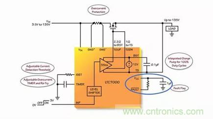 它還有著強大1Ω 柵極驅動器,能夠以非常短的轉換時間驅動大柵極電容 MOSFET,這種過流跳變功能非常適合高頻開關和靜態開關應用。加上故障標記、欠壓閉鎖和過壓閉鎖等保護功能,可以發現它在工業和汽車市場中是非常有用的,例如靜態開關驅動器、負載和電源開關驅動器及繼電器替代產品。接下來我們就說說LTC7000的特點~