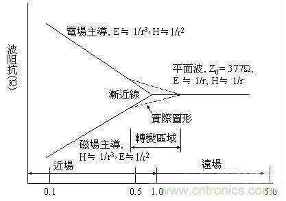 近場(near field)(磁和電的成份)和遠場的關係,如附圖一所示。所有的波都是磁場和電場成份的組合。這種組合稱作「PoynTIng向量」。shijishang,shimeiyouyigedandudedianbohuocibocunzaide。womenzhisuoyinenggouceliangdaopingmianbo,shiyinweiduiyigexiaotianxianeryan,zaijulilaiyuanduanshugebochangdedifang,qiboqian(wavefront)看起來像平麵一樣。