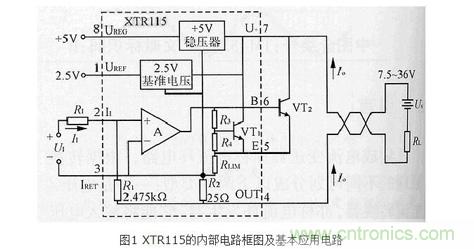 需要指出,XTR115隻能配NPN功率管,不能配MOS場效應功率管。外部功率管應滿足XTR115對電壓、電流的要求,使用中還須給功率管裝上合適的散熱器。