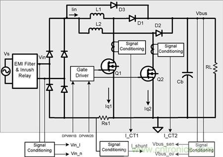【導讀】示波器是調試模擬電源的最好工具,對於數字控製電源而言也是如此。通過代碼進行單步執行不是一個可行的辦法,因為這很容易燒掉 FET。然而,數字係統的挑戰在於很多信號在芯片內部消失。敬請使用 UCD3138 PFC EVM 用戶指南,這裏有幾個可演示固件控製 PFC 的方框圖實例。