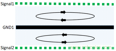 (1)此種結構,由於信號層與回流參考平麵相鄰,S1和S2緊鄰地平麵,有最佳的磁通抵消效果;