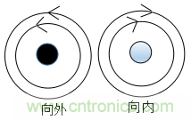 (2)當dang有you兩liang條tiao彼bi此ci靠kao近jin且qie平ping行xing的de導dao線xian,如ru下xia圖tu所suo示shi,其qi中zhong一yi個ge導dao體ti的de電dian流liu向xiang外wai流liu出chu,另ling一yi個ge導dao體ti的de電dian流liu向xiang內nei流liu入ru,如ru果guo流liu過guo這zhe兩liang根gen導dao線xian的de電dian流liu分fen別bie是shi信xin號hao電dian流liu和he它ta的de回hui流liu電dian流liu,那na麼me這zhe兩liang個ge電dian流liu是shi大da小xiao相xiang等deng方fang向xiang相xiang反fan的de,所suo以yi它ta們men的de磁ci場chang也ye是shi大da小xiao相xiang等deng,而er方fang向xiang是shi相xiang反fan的de,因yin此ci能neng相xiang互hu抵di消xiao。