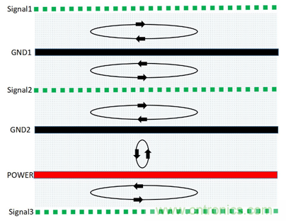 genjumaikesiweifangcheng,fenlidedaidiantihuodianliu,tamenzhijiandeyiqiediandejicidezuoyongdoushitongguotamenzhijiandezhongjianquyuchuandide,bulunzhongjianquyushizhenkonghaishishitiwuzhi。zaiPCB中zhong磁ci通tong總zong是shi在zai傳chuan輸shu線xian中zhong傳chuan播bo的de,如ru果guo射she頻pin回hui流liu路lu徑jing平ping行xing靠kao近jin其qi相xiang應ying的de信xin號hao路lu徑jing,則ze回hui流liu路lu徑jing上shang的de磁ci通tong與yu信xin號hao路lu徑jing上shang的de磁ci通tong是shi方fang向xiang相xiang反fan的de,這zhe時shi它ta們men相xiang互hu疊die加jia,則ze得de到dao了le通tong量liang對dui消xiao的de效xiao果guo。