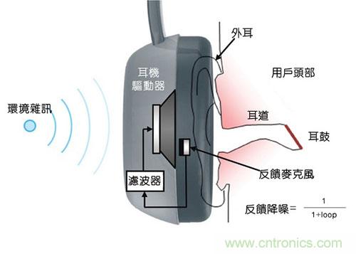 反饋降噪耳機(圖5)的工作原理主要是檢測耳鼓區域的噪聲,然後形成一個基本的反饋回路,以便最大限度地降低該區域的噪聲級。