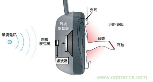 實(shi)際(ji)上(shang)可(ke)以(yi)盡(jin)量(liang)提(ti)前(qian)偵(zhen)測(ce)環(huan)境(jing)噪(zao)聲(sheng)來(lai)補(bu)償(chang)該(gai)延(yan)遲(chi),這(zhe)有(you)助(zhu)於(yu)讓(rang)處(chu)理(li)器(qi)有(you)更(geng)多(duo)時(shi)間(jian)處(chu)理(li)並(bing)輸(shu)出(chu)抗(kang)噪(zao)訊(xun)號(hao),另(ling)外(wai),將(jiang)降(jiang)噪(zao)麥(mai)克(ke)風(feng)放(fang)置(zhi)於(yu)遠(yuan)離(li)耳(er)道(dao)的(de)入(ru)口(kou)也(ye)有(you)利(li)於(yu)擴(kuo)大(da)降(jiang)噪(zao)的(de)角(jiao)度(du)(圖3)。