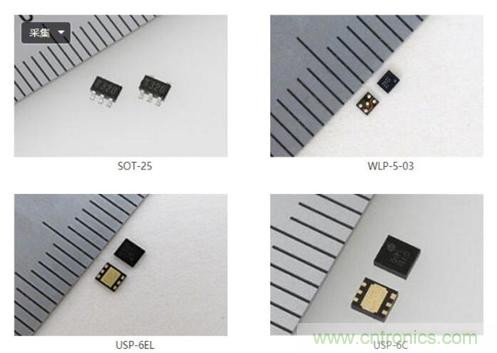 提供了SOT-25和USP-6C(2.0 mm×1.8 mm, t = 0.6 mm MAX),USP-6EL(2.0 mm×1.8 mm, t = 0.4 mm MAX),WLP-5-03(1.26mm×1.06mm, t=0.4mm)封裝.