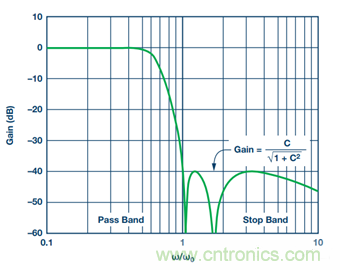 為了確定通帶中的最大紋波量,應使該規格等於係統要求的最大限值。這樣有助於獲得更快的阻帶滾降。