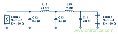 使用濾波器軟件,如MathCad,® MATLAB,® 或ADS來設計單端低通濾波器。
