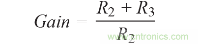 所有電阻(R1至R3)應具有相同的電阻溫度係數(TCR),但不一定要與DAC內部電阻的TCR相同。電阻R1用於根據R2和R3及以下關係調整DAC內部電阻(RFB):