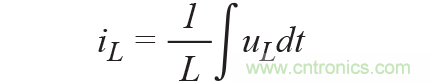 在這個例子中,導通時間內電感兩端的電壓約為44.7 V,開關節點一側的電壓為48 V,輸出端電壓為3.3 V。電感電流通過以下公式計算: