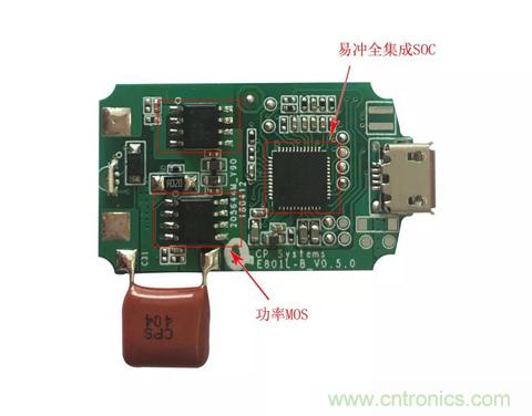 再來看另外一種案例:SoC方案,以易衝無線的全集成SoC無線充電器方案“EC8000係列”為例,如下圖。