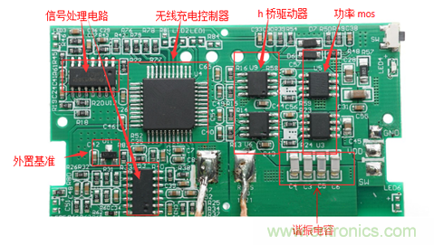 這種SoC方案下,PCB上隻有一顆大芯片,和兩個MOS管,相當簡潔。SOC內部集成了無線充電驅動,H橋驅動器,運放,內置溫度保護功能等,一顆芯片實現所有功能,可有效控製成本和精簡生產流程。