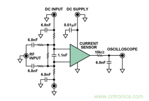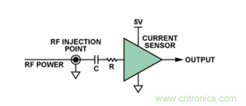 具體而言,這些測試都采用 “直接功率注入法”完成,這是一種通過電容將RF信號耦合至特定器件引腳的方法。根據待測IC的類型,針對不同的RF信號功率水平和頻率範圍,測試器件的每路輸入。圖4顯示了在特定引腳上執行直接功率注入測試的原理示意圖。