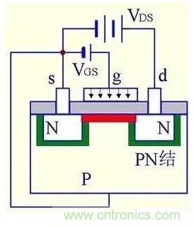 (1) VGS=0時,不管VDS極性如何,其中總有一個PN結反偏,所以不存在導電溝道。