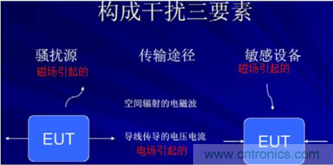 那麼,構成幹擾要有三要素,騷擾源,傳播途徑,敏感設備。騷擾源分兩種,一種是電場的騷擾源,一種是磁場的騷擾源。