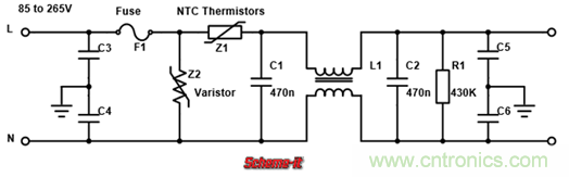 為了解決這一問題,最簡單方法加一個NTC熱敏電阻(如下圖1中的Z1)來減小湧浪電流的大小,此時通電瞬間的浪湧電阻相當於電壓除以NTC熱敏電阻與濾波電容的等效串聯電阻之和