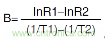 它被定義為兩個溫度下零功率電阻值的自然對數之差與這個溫度倒數之差的比值。