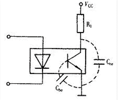 由於光耦自身存在的分布電容,對傳輸速度造成影響,光敏三極管內部存在著分布電容Cbe和Cce,如圖4suoshi。youyuguangoudedianliuchuanshubijiaodi,qijidianjifuzaidianzubunengtaixiao,fouzeshuchudianyadebaifujiushoudaolexianzhi。danshi,fuzaidianzuyoubuyiguoda,fuzaidianzuRL越大,由於分布電容的存在,光電耦合器的頻率特性就越差,傳輸延時也越長。