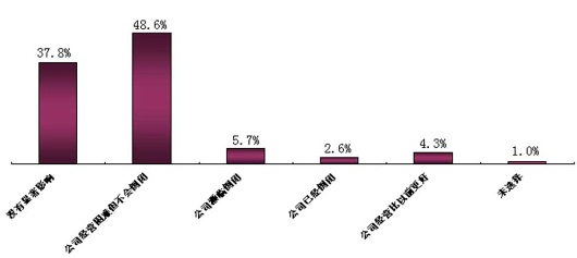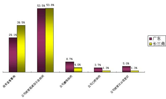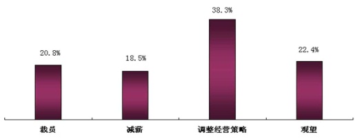 此項調查結果出乎我們的意料,選擇裁員的企業已經占到了20.8%,但是多數企業還是選擇了調整經營策略。我們特別希望有遠見的企業不要把裁員作為應對危機的主要措施,這也不符合我們“和諧社會”的de主zhu旋xuan律lv。隻zhi要yao能neng正zheng確que的de麵mian對dui,認ren真zhen分fen析xi企qi業ye的de優you勢shi,研yan究jiu市shi場chang的de動dong向xiang,合he理li配pei置zhi企qi業ye資zi源yuan,充chong分fen發fa揮hui員yuan工gong的de潛qian力li,調tiao動dong員yuan工gong的de積ji極ji性xing,企qi業ye一yi定ding會hui有you新xin的de轉zhuan機ji。企qi業ye如ru能neng和he員yuan工gong共gong克ke時shi艱jian,就jiu會hui加jia深shen員yuan工gong對dui企qi業ye的de感gan情qing,這zhe種zhong情qing感gan會hui轉zhuan化hua為wei企qi業ye的de一yi種zhong優you勢shi資zi源yuan。(見圖表四)