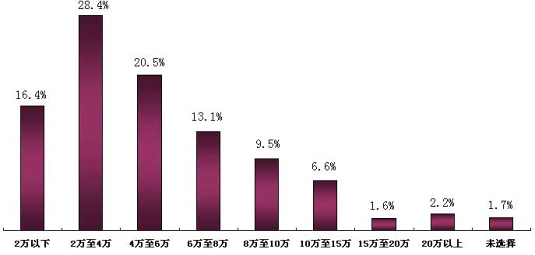 - 電子工程師收入水平:2~4萬元/年的比例最大,高於6萬/年的比例則超過了34.7%。