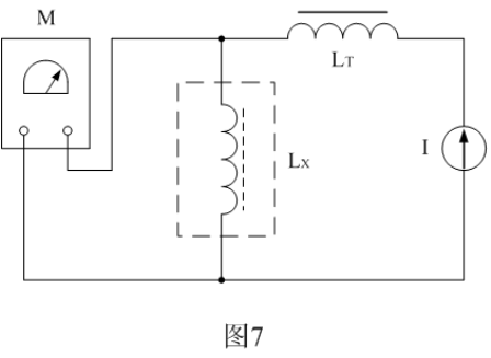 圖7是采用電流迭加法測試開關變壓器電感量或伏秒容量的工作原理圖。圖7中,M是電感測試儀,LT是隔離電感,I是恒流源,Lx為待測開關變壓器的初級電感。LT的電感量必須遠遠大於被測開關變壓器初級線圈的電感量。下麵我們來介紹圖7的工作原理。