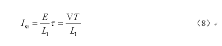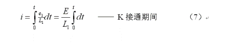 上麵(8)式是用來計算開關電源變壓器初級線圈或儲能電感線圈電流的公式,式中 為流開關電源變壓器初級線圈或儲能電感線圈電流的最大值,即:開關接通後,持續時間等於 時,流過變壓器初級線圈或儲能電感線圈電流的瞬時值;E為開關電源的工作電壓,V為加於變壓器初級線圈兩端的開關電壓(直流脈衝電壓),L1為變壓器初級線圈電感量。
