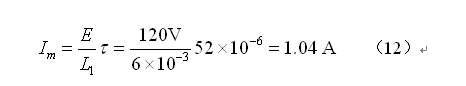根據圖8和圖9,正常工作時,流過高壓包初級線圈的最大電流Im不應該超過極限電流值Imax的70%,由此,可以求得流過高壓包初級線圈的極限電流Imax為1.49 A 。