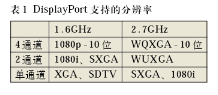 DisplayPort是一個高帶寬、雙向顯示互連,可以實現內置和外置顯示連接的通用新一代接口標準。憑借可擴展SerDes技術及改變通道數和速度,顯示係統可采用DisplayPort接口標準來支持各種分辨率,使其成為數字電視的理想選擇。表1顯示了一些由不同速度和通道數支持的DisplayPort的分辨率實例。