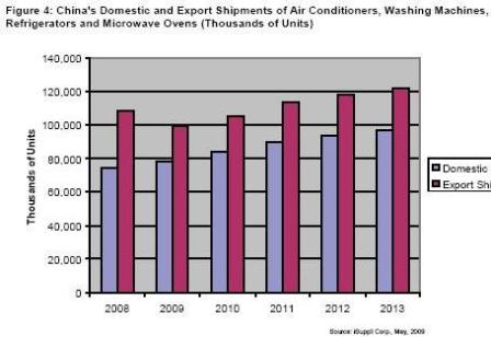 出口下滑拖累中國主要家電市場收縮——2009年出貨量下降2.7%