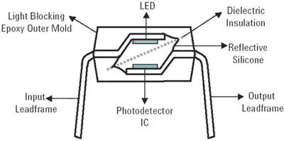 光學耦合器的工作基礎是LED發出的光通過透明的絕緣介質到光電探測器,這種介質提供2.5kV-6kV範圍的高壓絕緣。光耦合程度取決於光導材料。絕緣將通過光導材料本身或通過額外的光傳導介電材料實現。在任何情況下,LED的排列、光導材料、介電材料和IC都會直接影響光耦合和高壓絕緣的性能。