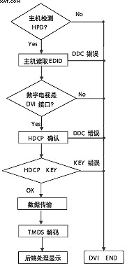 另外,從接收設備實際使用的角度看,HDCP的上述認證係統有一定的缺陷,使用中從DVI接口模式切換到其他接口模式,TMDS解碼處理器被PowerDown,HDCP識別將終止,中斷信號傳輸,意味著本次連接結束,然後顯示設備重新切換進入DVI接口模式,此時需要HDCP重新識別,則要求發送設備也要重新啟動,增加了使用的複雜性。