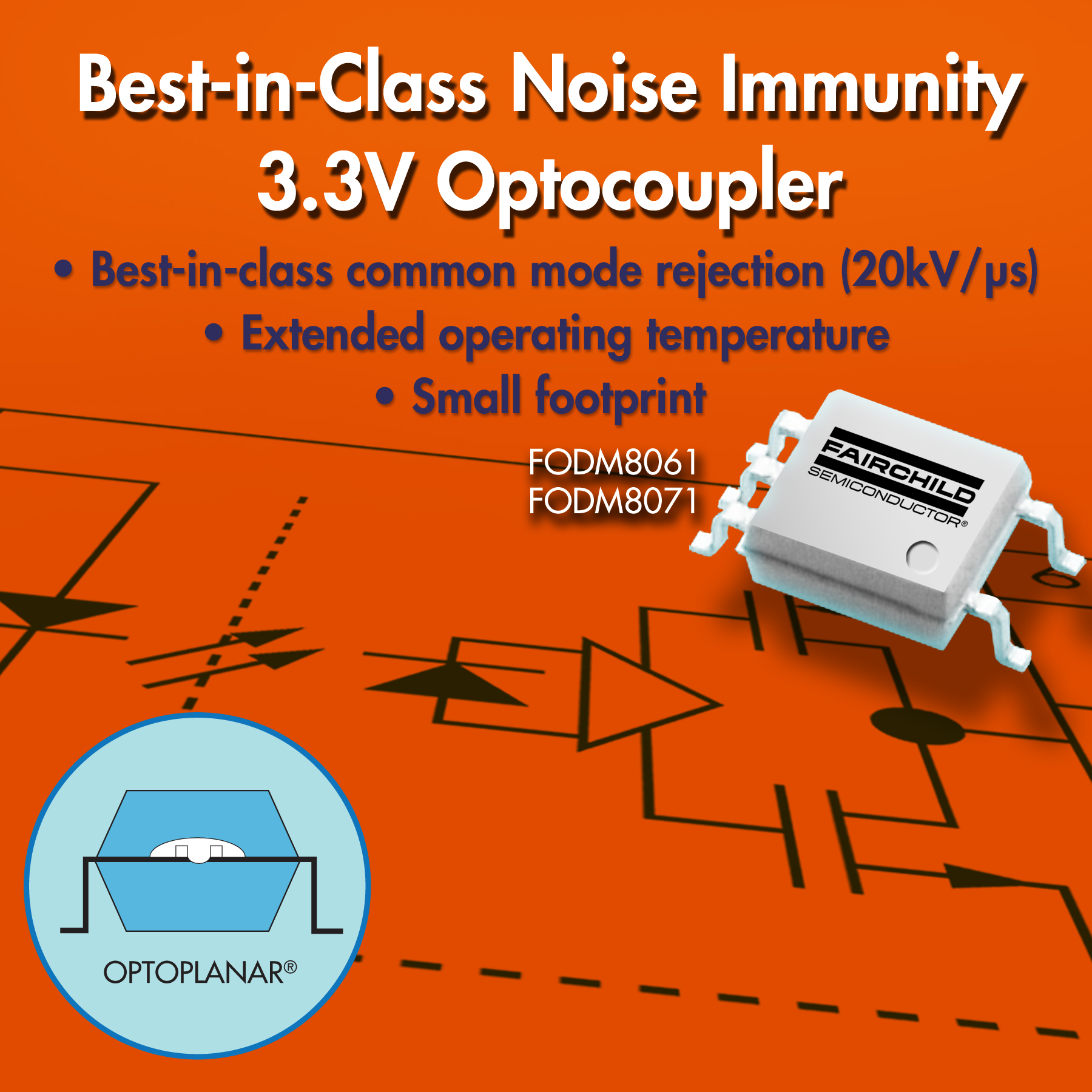 FODM8061帶有集電極開路輸出,而FODM8071則帶有邏輯門輸出,兩款產品均具有20kV/µs的業界最高共模抗噪性能(CMR) ,並支持-40º至+110º C的寬廣工作溫度範圍,因而能夠適應嚴苛的工業環境。