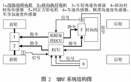 SBW的工作原理是當轉向盤轉動時,轉向傳感器和轉向角傳感器將測量到的駕駛員轉矩和轉向盤的轉角轉變成電信號輸入到ECU,ECU依yi據ju車che速su傳chuan感gan器qi和he安an裝zhuang在zai轉zhuan向xiang傳chuan動dong機ji構gou上shang的de位wei移yi傳chuan感gan器qi的de信xin號hao來lai控kong製zhi轉zhuan矩ju反fan饋kui電dian動dong機ji的de旋xuan轉zhuan方fang向xiang,並bing根gen據ju轉zhuan向xiang力li模mo擬ni,生sheng成cheng反fan饋kui轉zhuan矩ju,控kong製zhi轉zhuan向xiang電dian動dong機ji的de旋xuan轉zhuan方fang向xiang、轉矩大小和旋轉角度,通過機械轉向裝置控製轉向輪的轉向位置,使汽車沿著駕駛員期望的軌跡行駛。
