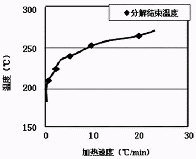 圖6有機外殼分解結束溫度與加熱溫度的關係