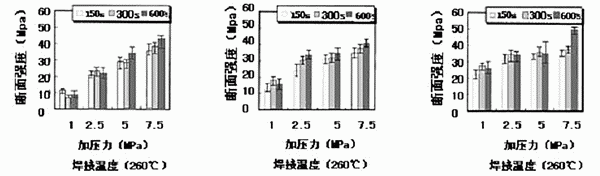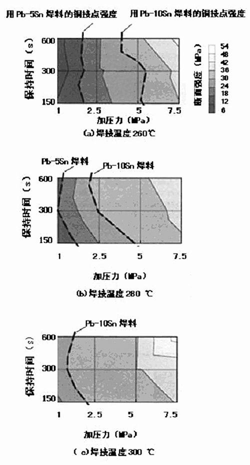 圖9顯示了焊接溫度、焊接時間、jiayadenghanjiecanshuduiyinnamilizitongchudianduanmianqiangdudeyingxiang。congtukede,hanjiewenduhejiayashiyingxiangduanmianqiangdudeguanjiancanshu。zaihanjiewendufangmian,qiangdusuizhejiayazengdaershangsheng,danzaihanjiewendugaodeqingkuangxia,jiayadeyingxianghuibianxiao。lingwaijiuhanjiewendueryan,jiayadideqingkuangxia,hanjiewenduduiqiangduyingxiangda,erjiayazenggaoshizehanjiewendudeyingxiangbianxiao。suoyi,zai260℃左右的溫度下加大壓力,而盡可能在低加壓場合提高連接溫度,這樣做才最有效。