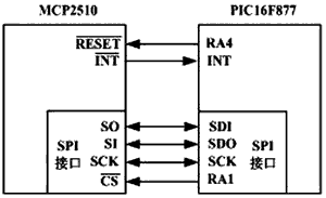 PIC16F87x通過SPI接口和MCP2510進行數據交換。