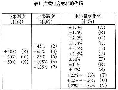其餘材料是按其工作溫度的範圍和電容量的變化率來命名的。詳見表1。